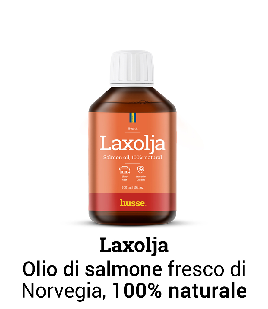 Laxolja, integratore a base di olio di salmone 100% naturale, ricco di antiossidanti, fondamentale per lo sviluppo, il mantenimento e funzionamento ottimale di molti tessuti e organi