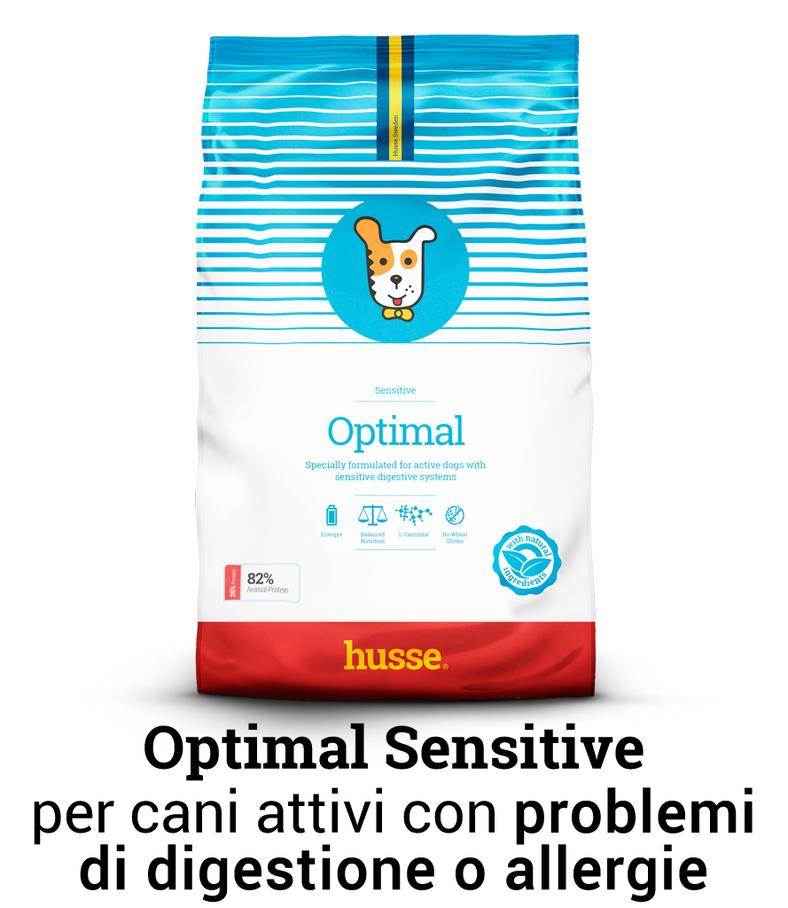 Optimal sensitive - crocchette per cani attivi con sistema digerente sensibile e problemi di allergie. Non contiene glutine.