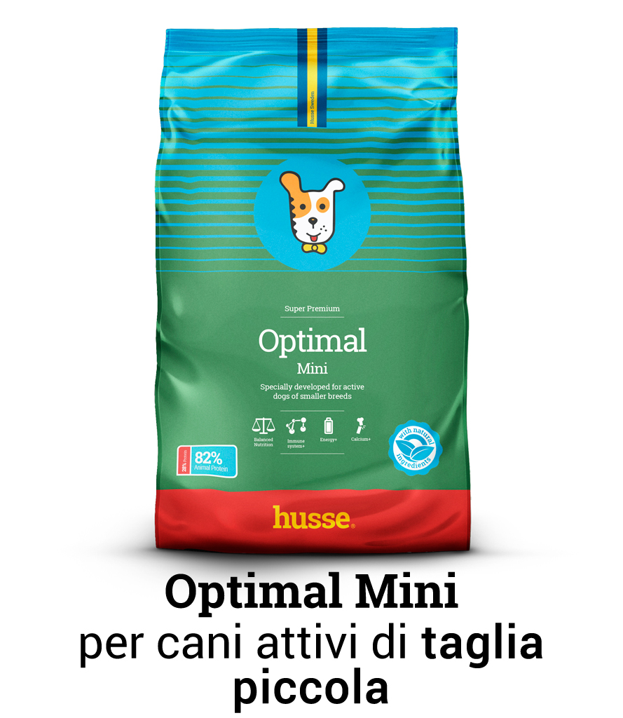 Optimal mini - crocchette per cani attivi di taglia piccola con elevate percentuali di grassi e altri nutrienti per soddisfare il fabbisogno energetico aggiuntivo delle razze più piccole.