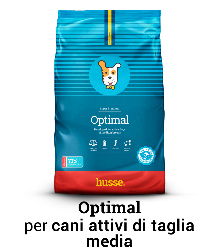 Optimal - crocchette per cani attivi di taglia media con un notevole tenore in massa grassa per soddisfare l’elevato fabbisogno energetico