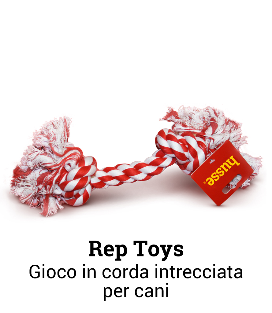 Rep Boll e Rep Toys di Husse sono entrambi giochi in corda intrecciata perfetti per far divertire il tuo animale ma anche a rinforzare le mascelle e favorire l'igiene orale senza danneggiare i denti.