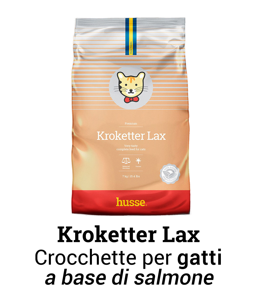 Kroketter Lax: Crocchette per gatti al salmone, favorisce la salute delle vie urinarie, e contiene fibra naturale per prevenire la formazione di boli di pelo nel tratto intestinale.