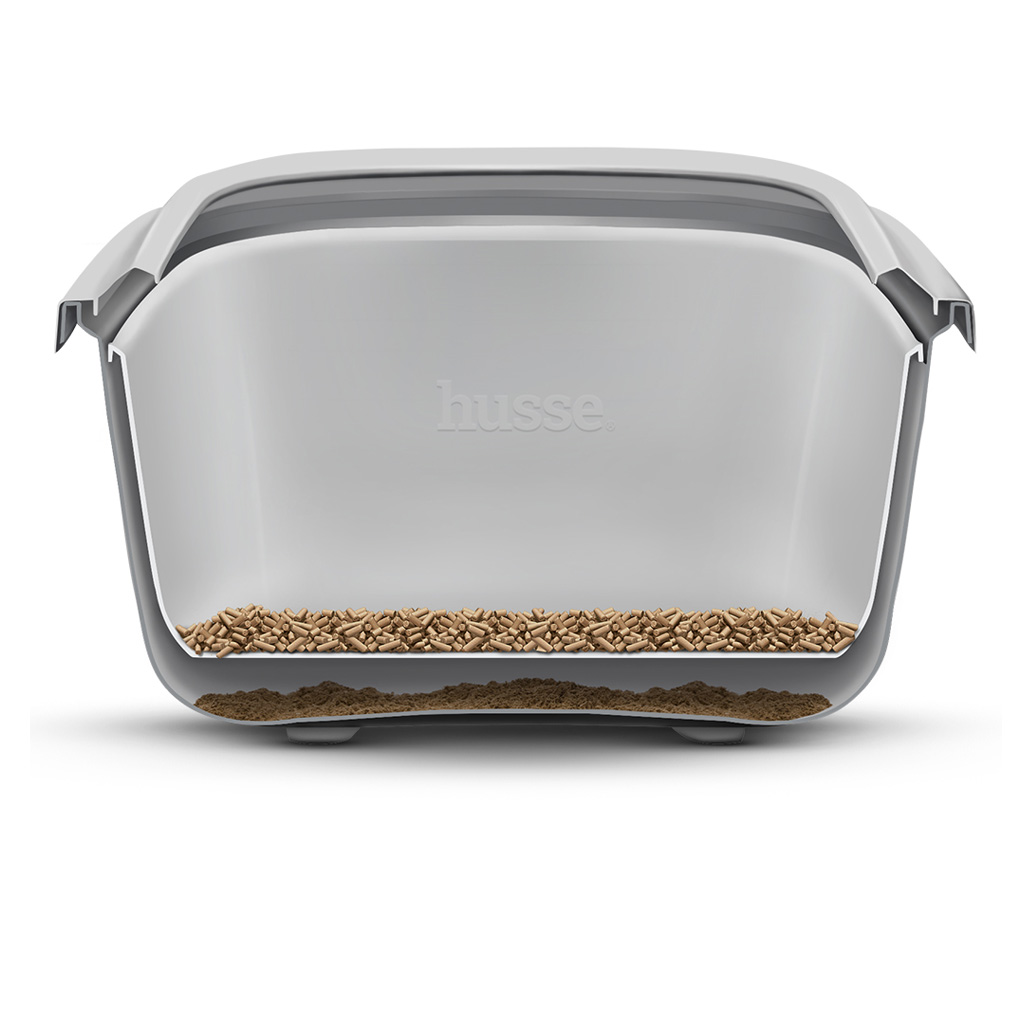 Eco Strö si basa su un meccanismo molto semplice: utilizzando il tray system di Husse, una lettiera composta da 3 parti: la vaschetta principale, l’interno e una griglia rimuovibile.