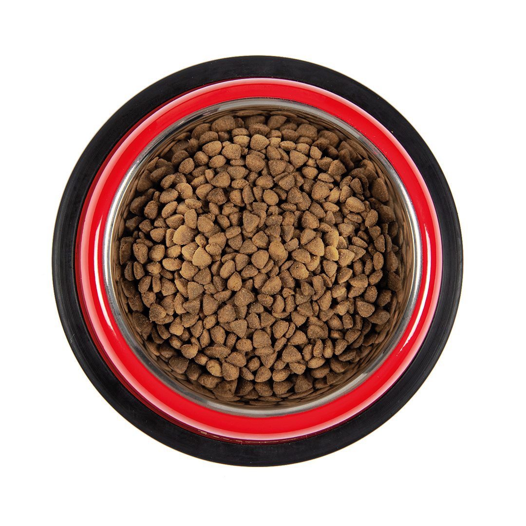Agnello, pollo, riso, grasso di origine animale, glutine del mais, mais, farina di riso, proteine idrolizzate di origine animale, lievito, minerali, cellulosa, olio di salmone, uova intere disidratate, cloruro di potassio, frutto-oligosaccaridi (0.3%), Yucca (120 mg/kg).