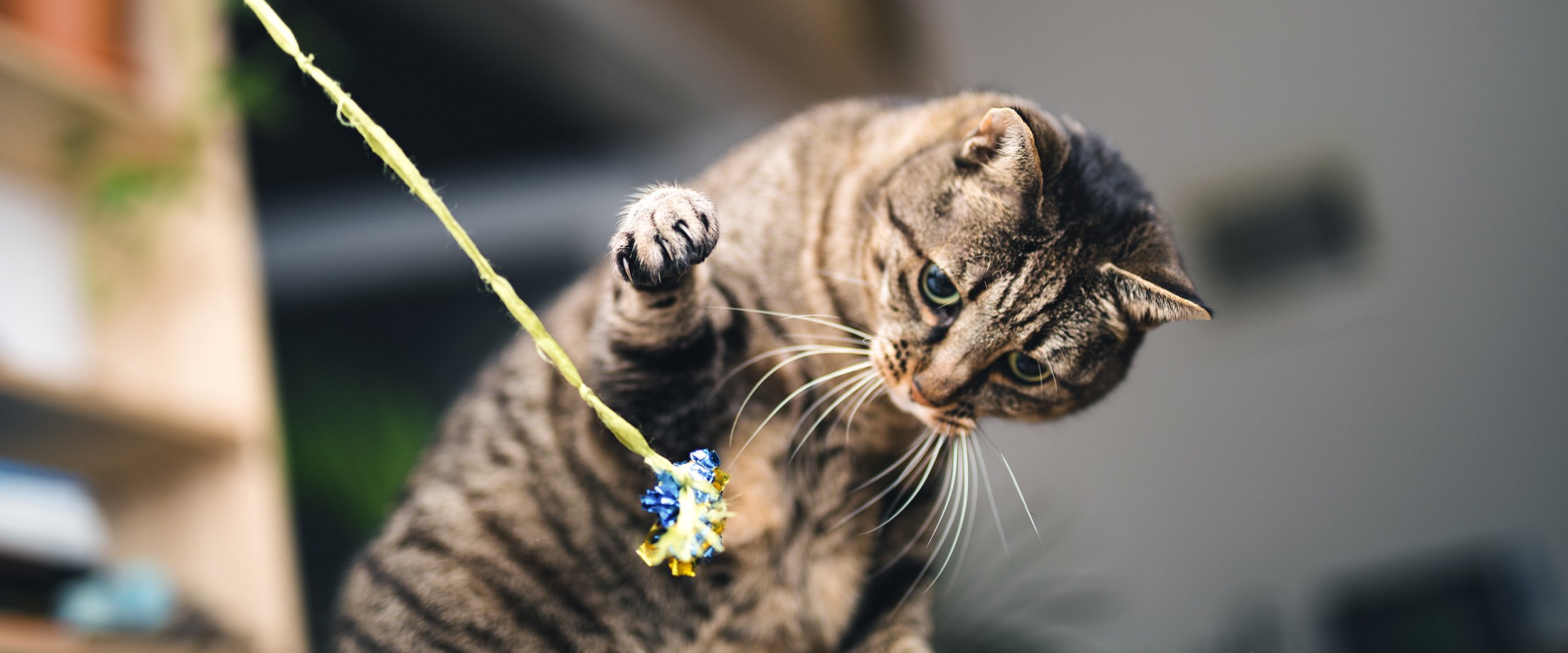 L'attività fisica può essere molto utile per mantenere il tuo gatto in buona forma. Ogni giorno trascorri un po' di tempo giocando con il tuo gatto, questo può accelerare ulteriormente il processo di combustione del grasso in eccesso. I gatti adulti hanno bisogno di almeno 20 minuti di gioco durante il giorno. Se il tuo gatto non ama molto giocare o perde rapidamente interesse, puoi dividere quel tempo in alcune sessioni più brevi.