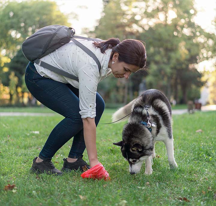 Raccogli i rifiuti e capovolgi il sacchetto.